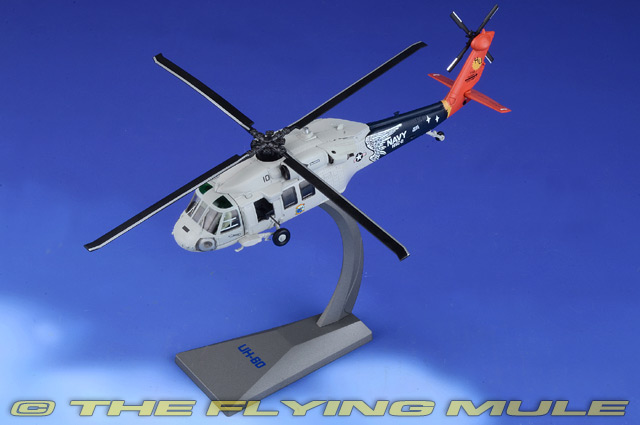 The Navy decided to replace its venerable CH-46 Sea Knight helicopters in 1997. After sea demonstrations by a converted UH-60, the Navy awarded production contract for the CH-60S in 1998. The variant first flew on 27 January 2000 and it began flight testing later that year. The CH-60S was redesignated MH-60S in February 2001 to reflect its planned multi-mission use. Unlike all other Navy H-60s, the MH-60S is not based on the original S-70B/SH-60B platform with its forward-mounted twin tail-gear and single starboard sliding cabin door. Instead, the S-model is a hybrid, featuring the main fuselage of the S-70A/UH-60, with large sliding doors on both sides of the cabin and a single aft-mounted tail wheel; and the engines, drivetrain and rotors of the S-70B/SH-60. Designed as a better-performing, more reliable replacement for the UH-1 Huey, the UH-60 Black Hawk was first flown on November 29, 1974. The Black Hawk was one of the first aircraft to use the General Electric T700, a common turbine engine designed for use in multiple Army helicopters. This four-bladed, twin-engined, medium-lift aircraft has a low-profile shape so that it can be transported aboard the C-130 Hercules. It also has greater survivability than the helicopter it replaced, with advanced avionics and electronics such as the Global Positioning System (GPS). The Black Hawk also serves as Marine One when transporting the President of the United States. © Copyright 2003-2025 The Flying Mule, Inc. The Air Force 1 range presents detailed, ready-made diecast models of military aircraft. Air Force 1 (Series 2) diecast airplanes feature: - Diecast metal construction with some plastic components.