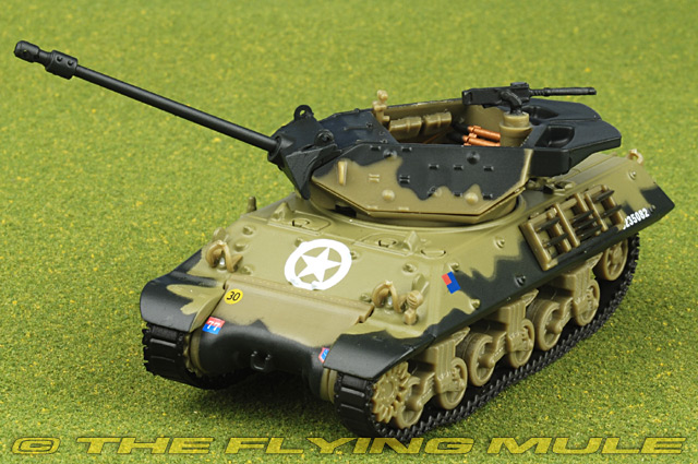 In 1943 the US introduced the M10 as a SP anti-tank gun. It used the carriage of the M4 tank and combined it with the 3-inch M7 AA Gun mounted on an open top turret. Because of the weight of the gun a counter-weight had to be installed on the rear of the turret. The British took their M10's and exchanged the 3-inch gun for the larger 17-pdr that had much better stopping power against the Panther and Tigers. They added some armor to the turret and named it Achilles. The first modified tanks went into service in 1944 and by the end of WWII 1,100 of the 1,650 M10s the British received under the Lend Lease Program became Achilles". The Guards Armoured Division was formed June 17, 1941. After almost three years of training and waiting for action they were deployed to Normandy and arrived June 26, 1944. The first real test under fire came during Operation Goodwood. From July 18 - 20, 1944 they fought as part of the largest tank battle the British had ever fought. After finally breaking out the 21st became part of the Falaise Pocket and eventually the liberation of Brussels. As part of Operation Market Garden in September 1944 along with American paratroopers they fought to capture the Waal bridge at Nijmegen. This bridge was one of several the Allies would use to cross the Rhine and advance rapidly into Germany. The next bridge in the string of bridges to be captured was Remagen however the reinforcements for the troops trying to capture the were delayed and this bridge wasn't taken. Because of the Allied failure to capture the Remagen bridge it meant that the northern section of the Netherlands would not be liberated before winter. This winter would go into the history books as the "Hongerwinter" (Hungerwinter") when ten of thousands would starve to death because of the lack of food and the Germans preventing supplies from reaching them. The division existed until June 12, 1945 when it was reorganized as an infantry division. Designed to fulfill a new combined-arms doctrine that emphasized the need for infantry support and exploitation, the M10 tank destroyer first entered service in Tunisia in 1943. Called "Wolverine" by the British (a name that was never adopted by US soldiers), the M10 was lightly armored and therefore more maneuverable than a typical tank. Its powerful 3" M7 gun fired armor-piercing M79 shot, which made it an effective weapon against enemy tanks. Upon its debut it was capable of destroying most German tanks, but by 1944 the newer German Tiger and Panther proved too formidable for it, though it remained in service through the end of the war. © Copyright 2003-2025 The Flying Mule, Inc. The Amercom "Combat Vehicles" range presents affordable, ready made diecast models of light military vehicles in 1:72 scale. These arrive in low-cost, discardable blister type packaging. Amercom "Combat Vehicles" diecast vehicles feature: - Diecast metal and plastic construction.