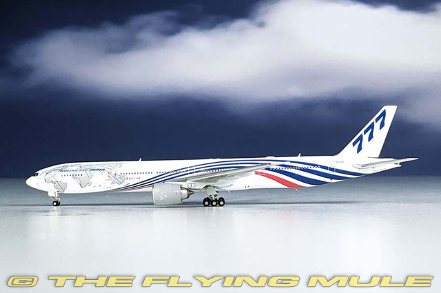 | Boeing 777-300ER | | 7.25" | | 6.5" | Designed as a wide-bodied, twin-engined airliner to compete with the Airbus A330/A340 and the McDonnell Douglas MD-11, the 777 was first flown on June 12th, 1994. A pair of the world's largest diameter turbofan engines power the aircraft which currently holds the record for world's largest twin-engined airliner. The 777 was Boeing's first fly-by-wire airliner, featuring complete glass cockpit displays and flight envelope protection. Standard varients have a range of 4,200 nautical miles while Extended Range (ER) variants can fly for 6,600 nautical miles and the Longer Range (LR) variant is the world's longest range airliner capable of flying 7,800 nautical miles. © Copyright 2003-2025 The Flying Mule, Inc. The Aviation 400 range presents detailed, ready-made diecast models of civilian and military transport aircraft. Aviation 400 diecast airplanes feature: - Diecast metal construction with some plastic components.