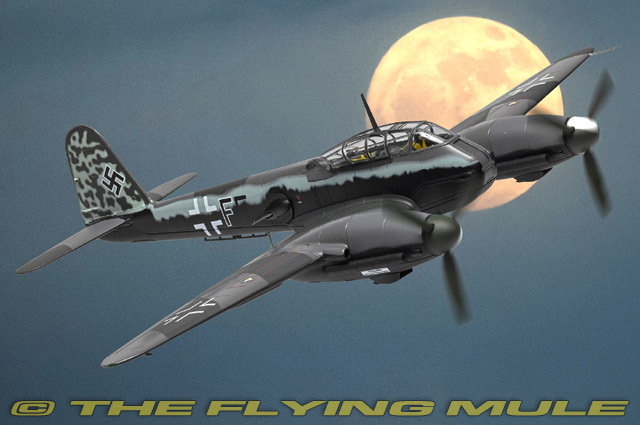 The Luftwaffe's long range night intruder campaign towards the end of the Second World War was intended to disrupt Allied air operations, spreading confusion and panic by infiltrating bomber streams, or striking at aircraft whose crews had "switched off" as they approached their base at the end of another long mission. The Messerschmitt Me 410 was ideally suited to this task - fast and heavily armed, these Fernnachtjagd aircraft operated in conjunction with the regular Blitz bomber force, with more specific targets and often operating alone in the dark night skies.