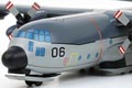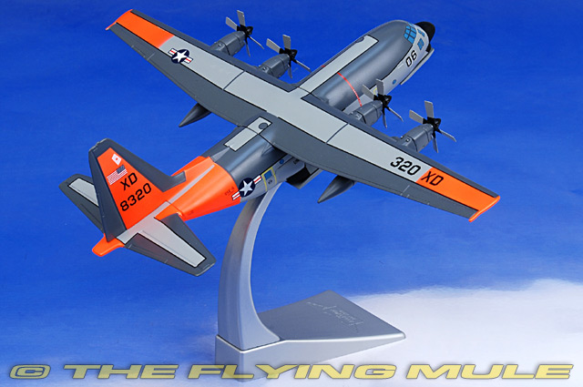 Corgi's 1:144 scale C-130 is constructed almost entirely of diecast metal with only the smallest amount of plastic used. The model's wide fuselage and carefully rendered nose section is solid, and pad-printed windows and doors provide a seamless touch that does not interrupt the lines of the aircraft. The solid metal wing features external fuel tanks and thinly stamped metal propellers. This series includes many versions, from gunship to search and rescue, scientific research support and aerial refueling to maritime patrol. The series includes almost all variants, from the early three-bladed propeller "A" to the current "J" variant with upgraded engines and six-bladed propellers.