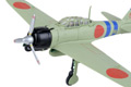 Corgi's 1:72 scale Zeros are constructed almost entirely of diecast metal with only the smallest amount of plastic used in the manufacturing process. The solid diecast metal wing features simulated fabric-stretched control surfaces with counter balance weights applied separately to the top. The large "bird-cage" canopy allows for easy viewing of a detailed hand-painted pilot figure. Radial engine detail is visible inside the engine cowling with machine gun ports on top for the internally mounted Type 97 guns. Most releases include removable landing gear and center mounted fuel tank that are easy to install for ground display (see photos).