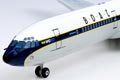 Corgi's 1:144 scale VC10 is large in this scale and features near-solid diecast construction. The model's sleek tubular shaped fuselage and wonderfully sculpted nose has pad-printed windows and doors that do not interrupt the lines of the aircraft. The solid metal wing has large individually applied wing fences attached to the top inboard surface, and details of its "flower flap" system are found at the trailing edge. Individual releases in this series include a passenger airliner and an aerial refueling platform with refueling pods located under each wing.