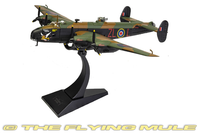 Corgi's 1:72 scale Halifax includes a complete set of crew - there is a pilot and navigator in the cockpit and gunners occupying the dorsal and rear rotating turrets. The bomb-bay doors can be configured in the open position, revealing a full load of bombs. The series includes the early Mk.II, featuring a rotating nose turret, early style dorsal mounted turret and "D" shaped vertical stabilizers, and the Mk.III, featuring an upgraded dorsal turret and a single gun mounted to a transparent nose window. Each release includes landing gear that is easy to install for ground display and an all-metal stand for in-flight display.