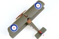 Corgi's 1:48 scale Camels are some of the most historically significant aircraft included in their WWI aircraft series. WWI fighters were relatively small in comparison to their WWII counterparts and 1:48 scale captures significant details that would be lost in smaller scales. The model uses fine gauge wire to represent the structurally significant bracing wires found on the actual aircraft. Additionally, the mold faithfully replicates the complex contours of the entire aircraft, simulating a stretched fabric covering. A detailed pilot figure sits behind the twin Vickers machine guns while the top wing includes the inboard cut-outs, so essential to the pilot's forward visibility in a dogfight. Up front, the propeller and engine are nicely detailed and free to rotate in unison behind the cowling, just as with the real aircraft. The model rests on rolling rubber tires that accurately reproduce the gray color vulcanized natural rubber takes on after prolonged exposure to sunlight.