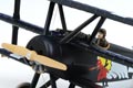 Corgi's 1:48 scale Dr.Is capture the unmistakable lines of the real aircraft, including ailerons that extend beyond the upper wing-tips. Fine gauge wire represents the structurally significant bracing wires found on the actual aircraft. Additionally, the mold faithfully replicates the complex contours of the entire aircraft, simulating a stretched fabric covering. A detailed pilot figure sits behind the twin Spandau machine guns. Up front, the propeller and engine are nicely detailed and free to rotate in unison behind the cowling. The model rests on rolling rubber tires that accurately reproduce the gray color vulcanized natural rubber takes on after prolonged exposure to sunlight.