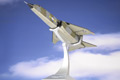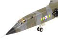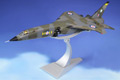 Corgi's 1:72 scale TSR.2 is constructed almost entirely of diecast metal with only the smallest amount of plastic used. This model is heavy, weighing more than one and a half pounds. The nose correctly includes both the gold-tinted pilot and navigator windows and a clear forward windscreen. The small delta wing is nicely detailed with down-turned wingtips and flaps. Details of the afterburning turbojet engines are clearly visible at the rear. The robust metal landing gear installs quickly and easily for ground display and includes rotating main gear, a feature not commonly seen in any scale. A heavily constructed all metal display-stand is included.