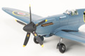 Corgi's 1:72 scale Spitfire series includes many versions of this famous aircraft, from Mk I to the Griffon-engined variants with five bladed propellers. The characteristic under-wing mounted pitot tube and offset radiator and oil cooler ducts are mounted below the solid metal wings with a variety of machine guns and cannons. The all metal horizontal stabilizers and rudder feature simulated fabric stretched control surfaces. On some releases, the top engine cowing is removable to reveal engine detail engine and exhaust detail. The model is constructed almost entirely of solid diecast metal and feels surprisingly heavy in this scale.