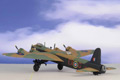 Corgi's 1:72 scale Stirling is a large model in this scale, cleverly constructed in diecast metal with plastic components used in areas such as turrets and engines for maximum scale detail. The fuselage features transparent side mounted windows and the large cockpit canopy provides for easy viewing of crew figures. Each of the nose, dorsal and aft turrets can rotate and includes elevating machine guns. The central and internal wing bomb-bay compartments are constructed as subassemblies for quick and easy configuration. The model can be display on its gear, or quickly configured for display on its heavily constructed all-metal display stand.