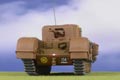 Designed as a heavy infantry tank to replace the Matilda II, the Churchill prototype was completed in June 1940 and the type entered production in June 1941. The design was largely influenced by the British Army's experiences with trench warfare during WWI. As a result, the Churchill was a large, heavy (38 tons), and relatively slow machine, built to traverse heavily cratered landscapes to take on lightly armored infantry. The small turret significantly restricted the size of armament that could be fitted to the Churchill but it's heavy armor made it much more resilient than contemporary allied tanks.