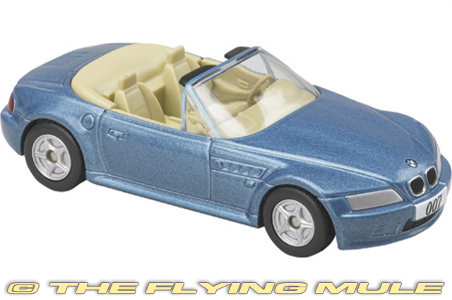 James Bond's Jaguar BMW Z3 from the 1995 movie, "GoldenEye". The BMW Z3 is a stylish two-seat roadster that marked BMW's return to the classic open-top sports car segment in the 1990s. Launched in 1995 and famously featured in the James Bond film GoldenEye, the Z3 combined retro-inspired design with modern engineering. Initially offered with four-cylinder engines, it later gained six-cylinder powerplants for improved performance. The Z3 was praised for its sharp handling, rear-wheel drive dynamics, and strong build quality. A coupe version joined the lineup in 1998, adding rigidity and unique styling. Compact, fun to drive, and unmistakably BMW, the Z3 became a beloved icon of 1990s motoring. © Copyright 2003-2025 The Flying Mule, Inc. The Corgi "TV and Film Favourites" range presents highly-detailed, ready-made diecast models of vehicles from popular Movies and TV shows. Models in this range are highly collectible and make great gifts TV and Movie fans. Corgi "TV and Film Favourites" diecast vehicles feature: - Diecast metal construction with some plastic components.