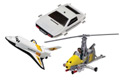 James Bond isn't just restricted to the use of beautiful cars in his adventures. This triple pack features the "Little Nellie" autogyro from "You Only Live Twice", the Lotus Esprit submarine from "The Spy Who Loved Me", and the "Moonraker" space shuttle as a showcase of the more unusual alternative modes of transport 007 has made use of to fulfil his missions.