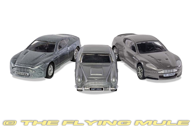 Aston Martin shares a long association with the exploits of James Bond, and this new set of die-cast vehicles brings you a collection of 3 memorable Aston Martins used by 007. The Aston Martin DB5 from "Goldfinger", the Aston Martin V12 Vanquish from "Die Another Day", and the Aston Martin DBS from "Casino Royale" combine as a triple pack of glamourous vehicles from across the film series. The Aston Martin Vanquish is a high-performance grand tourer that epitomizes British luxury and craftsmanship. First introduced in 2001, the Vanquish featured a 5.9-liter V12 engine paired with either a manual or automated manual transmission, offering breathtaking performance and a distinctive exhaust note. A second-generation model launched in 2012 further refined the design with carbon fiber body panels and a more advanced chassis. The Vanquish combines elegant styling with powerful performance, making it a favorite among enthusiasts and collectors. As a flagship model, it showcases Aston Martin's commitment to blending performance, luxury, and timeless aesthetics in a uniquely British package. © Copyright 2003-2025 The Flying Mule, Inc. The Aston Martin DB5, introduced in 1963, is an iconic British grand tourer known for its elegance, performance, and enduring legacy. Powered by a 4.0-liter inline-six engine, it delivered 282 horsepower and a top speed of 145 mph. Only 1,059 coupes were built, making it a rare collector's gem. Its fame skyrocketed when it appeared as James Bond's car in Goldfinger (1964), complete with gadgets like machine guns and an ejector seat. The DB5 combined luxury with cutting-edge technology of the era, establishing Aston Martin as a symbol of refinement, sophistication, and cinematic cool. It's a timeless automotive legend. © Copyright 2003-2025 The Flying Mule, Inc. The Aston Martin DBS is a high-performance grand tourer that blends luxury with thrilling dynamics. Originally introduced in 1967, the nameplate was revived in 2007 with the DBS V12, featuring a 6.0-liter engine producing 510 horsepower. In 2018, the DBS Superleggera replaced it, boasting a twin-turbo 5.2-liter V12 and 715 horsepower, making it one of Aston Martin's fastest road cars. With aggressive styling, carbon fiber construction, and refined interiors, the DBS represents the pinnacle of Aston Martin design and performance. It balances supercar capability with everyday usability, embodying power, elegance, and the brand's legacy of sophisticated British engineering. © Copyright 2003-2025 The Flying Mule, Inc. The Corgi "TV and Film Favourites" range presents highly-detailed, ready-made diecast models of vehicles from popular Movies and TV shows. Models in this range are highly collectible and make great gifts TV and Movie fans. Corgi "TV and Film Favourites" diecast vehicles feature: - Diecast metal construction with some plastic components.