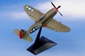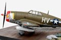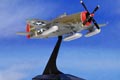 The finely crafted miniature from Warbirds is a P-47D Razorback version, so-called for the ridge behind the pilot's canopy. Later P-47Ds did away with this ridge in favor of a one-piece bubble canopy that gave the pilot better visibility. The model bears accurately rendered markings, including the "HV" fuselage code of the 61st FS, and the aircraft's name of "Little Chief". This particular aircraft was flown by 1st Lt. Frank W. Klibbe, who achieved seven victories. Of special note is the fact that this model fighter is presented on a beautifully modeled scenic base. The diorama presentation is stunning, and it means collectors don't have to worry about creating their own display base to show off this fine model. The diorama captures the atmosphere perfectly and the combination is a real eye-catcher.