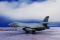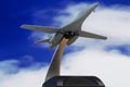 Dragon's 1:400 scale B-1 Lancer is constructed with an intelligent mix of diecast metal and plastic. The near seamlessly constructed diecast metal fuselage features delicate canards and pad-printed windows up front and twin-engine nacelles mounted on the rear. The wings are constructed in plastic to accurately replicate the true thickness in this scale. The models in this series are released as two separate versions, some with the wings in the full forward "low-speed" configuration and others in the fully swept "high speed" configuration.