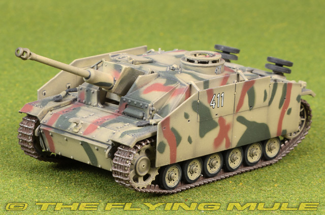 The Sturmgeschutz III (StuG III) assault gun was Germany's most produced armoured fighting vehicle during World War II. It was built on the chassis of the proven Panzer III tank. Initially intended as a mobile, armoured light gun for infantry support, the StuG was continually modified and was widely employed as a tank destroyer. On some vehicles, special armored metal skirts (Schurzen) were added to protect against anti-tank rifles and shaped-charge weapons. They worked by detonating incoming munitions at a distance from the main armor, reducing their penetrative effectiveness. Originally designed as a mobile, light gun to provide close infantry support, the StuG III first entered service in 1940. Early models were armed with a modest, low-velocity 75mm StuK 37 L/24 gun, but by the Spring of 1942 the Germans had modified the StuG III with a higher velocity StuK 40 L/43 gun so that it was a better match for Soviet KV-1 and T-34 tanks. The new configuration quickly proved to be an exceptionally effective tank destroyer--cost effective, easily camouflaged and difficult to target. By the spring of 1944, StuG IIIs were responsible for destroying some 20,000 Allied tanks. © Copyright 2003-2025 The Flying Mule, Inc. The Dragon Models "1:72 Dragon Armor Collector Series" range presents highly-detailed, ready-made plastic models of military vehicles. Dragon Armor tanks require no glueing or painting. Each model is an instant display piece or diorama centerpiece straight from the box and is 100% true to scale... these don't look like model tanks, they look like tanks!. Color, camouflage and unit markings are carefully researched for Maximum authenticity, marking the difference between and authentic scale model tank and a "toy" tank. Dragon Models "1:72 Dragon Armor Collector Series" display model vehicles feature: - Molded plastic construction (some releases include diecast metal components).
