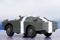 The BRDM is a four wheeled amphibious reconnaissance vehicle which is very lightly armoured by today's standards. It first appeared in 1959, and was in production until 1966. Total production was around 10,000 vehicles; less than 600 remain in the reserves of a number of countries. It was armed with a pintle-mounted heavy machine gun. The initial version of the vehicle, the Model 1957, had an open roof, but the standard production model, the Model 1958, had a roof with twin hatches. The vehicle was used as the basis of the 2P27 anti-tank missile launcher, using AT-1 Snapper missiles mounted in a retractable launcher.