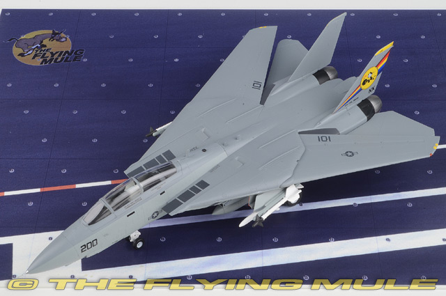 | Grumman F-14D Tomcat | | 10.25" | | 10.75" | Designed to carry the formidable long range AIM-54 Phoenix missile, the Grumman F-14 Tomcat was first flown on December 21st, 1970. Made famous by the Hollywood film Top Gun, the F-14 replaced the F-4 Phantom II as the US Navy's primary maritime air superiority fighter. Its design includes a variable geometry wing that can sweep back for high speed supersonic intercepts and forward for improved positioning in air to air dogfights. Nicknamed "Bombcat," the F-14 spent much of its late career in an air-to-ground role, carrying the Low Altitude Navigation and Targeting Infrared for Night (LANTIRN) system. © Copyright 2003-2025 The Flying Mule, Inc. The Easy Model "Platinum Collection" range presents highy-affordable, ready-made plastic models of military aircraft. While these models may not have the same "heft" as their diecast siblings, they do offer remarkable value for money. Most importantly, they look perfectly at home alongside diecast modes, allowing collectors to "flesh out" their collection with types and paint-schemes not yet available in diecast. Easy Model "Platinum Collection" display model airplanes feature: - Molded plastic construction.