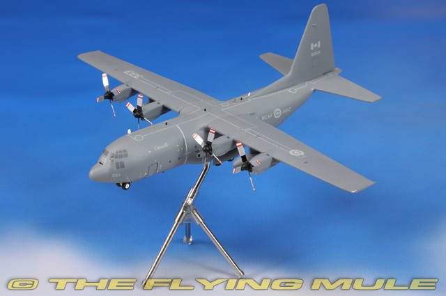 | Lockheed CC-130H Hercules | | 6" | | 8" | Designed to function as a troop, medical evacuation and cargo transport aircraft, the C-130 Hercules was first flown on August 23rd, 1954. Built by Lockheed and capable of over 40,000 lbs of payload, this four-engine turboprop aircraft is quite possibly the most versatile tactical transport in existence. Its modern roles include airlift and airdrop, electronic surveillance, search and rescue, space-capsule recovery, helicopter refueling and aerial attack. Capable of takeoffs and landings from unprepared runways, the C-130 has even landed and taken off from a carrier deck without benefit of arresting gear or catapults. © Copyright 2003-2025 The Flying Mule, Inc. The GeminiJets "Gemini 200" range presents higly-detailed, ready-made diecast models of civilian and military aircraft in 1:200 scale. Prized by collectors worldwide, Gemini define the benchmark by which other 1:200 aircraft brands are judged. GeminiJets "Gemini 200" diecast airplanes feature: - Diecast metal construction, including wings and tail surfaces.