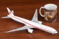 Gemini's 1:200 scale Boeing 777 is a large model in this scale and is constructed almost entirely of solid diecast metal. The wide-body fuselage features a solid all around seamless construction with pad-printed windows and doors, fine photo-etched antennas and glimmering jewel-cut anti-collision lenses on top and bottom. The model is supported on an all metal fixed landing gear with a steerable nose wheel, separately applied landing light lenses and pivoting main gear bogies. The solid metal wings feature accurately replicated flap track fairings and free spinning highly detailed fan blades inside each engine nacelles.