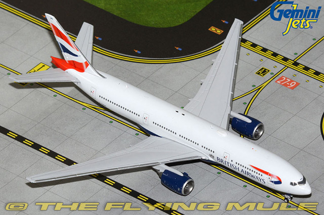 Please note: An optional display stand is available separately if you wish to display this model "in-flight". Designed as a wide-bodied, twin-engined airliner to compete with the Airbus A330/A340 and the McDonnell Douglas MD-11, the 777 was first flown on June 12th, 1994. A pair of the world's largest diameter turbofan engines power the aircraft which currently holds the record for world's largest twin-engined airliner. The 777 was Boeing's first fly-by-wire airliner, featuring complete glass cockpit displays and flight envelope protection. Standard varients have a range of 4,200 nautical miles while Extended Range (ER) variants can fly for 6,600 nautical miles and the Longer Range (LR) variant is the world's longest range airliner capable of flying 7,800 nautical miles. © Copyright 2003-2025 The Flying Mule, Inc. The GeminiJets "Gemini Jets" range presents higly-detailed, ready-made diecast models of civilian and military aircraft in 1:400 scale. Prized by collectors worldwide, Gemini define the benchmark by which other 1:400 aircraft brands are judged. GeminiJets "Gemini Jets" diecast airplanes feature: - Diecast metal construction, including wings and tail surfaces.