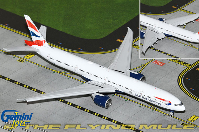 Please note: An optional display stand is available separately if you wish to display this model "in-flight". Designed as a wide-bodied, twin-engined airliner to compete with the Airbus A330/A340 and the McDonnell Douglas MD-11, the 777 was first flown on June 12th, 1994. A pair of the world's largest diameter turbofan engines power the aircraft which currently holds the record for world's largest twin-engined airliner. The 777 was Boeing's first fly-by-wire airliner, featuring complete glass cockpit displays and flight envelope protection. Standard varients have a range of 4,200 nautical miles while Extended Range (ER) variants can fly for 6,600 nautical miles and the Longer Range (LR) variant is the world's longest range airliner capable of flying 7,800 nautical miles. © Copyright 2003-2025 The Flying Mule, Inc. The GeminiJets "Gemini Jets" range presents higly-detailed, ready-made diecast models of civilian and military aircraft in 1:400 scale. Prized by collectors worldwide, Gemini define the benchmark by which other 1:400 aircraft brands are judged. GeminiJets "Gemini Jets" diecast airplanes feature: - Diecast metal construction, including wings and tail surfaces.