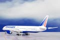 Please note: An optional display stand is available separately if you wish to display this model "in-flight". Designed as a wide-bodied, twin-engined airliner to compete with the Airbus A330/A340 and the McDonnell Douglas MD-11, the 777 was first flown on June 12th, 1994. A pair of the world's largest diameter turbofan engines power the aircraft which currently holds the record for world's largest twin-engined airliner. The 777 was Boeing's first fly-by-wire airliner, featuring complete glass cockpit displays and flight envelope protection. Standard varients have a range of 4,200 nautical miles while Extended Range (ER) variants can fly for 6,600 nautical miles and the Longer Range (LR) variant is the world's longest range airliner capable of flying 7,800 nautical miles. © Copyright 2003-2025 The Flying Mule, Inc. The GeminiJets "Gemini Jets" range presents higly-detailed, ready-made diecast models of civilian and military aircraft in 1:400 scale. Prized by collectors worldwide, Gemini define the benchmark by which other 1:400 aircraft brands are judged. GeminiJets "Gemini Jets" diecast airplanes feature: - Diecast metal construction, including wings and tail surfaces.