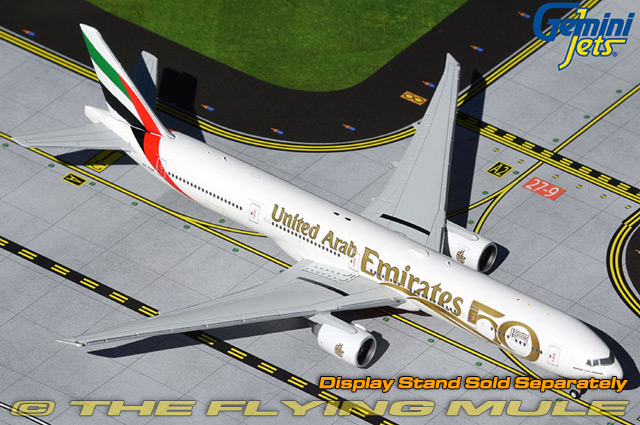 Please note: An optional display stand is available separately if you wish to display this model "in-flight". Designed as a wide-bodied, twin-engined airliner to compete with the Airbus A330/A340 and the McDonnell Douglas MD-11, the 777 was first flown on June 12th, 1994. A pair of the world's largest diameter turbofan engines power the aircraft which currently holds the record for world's largest twin-engined airliner. The 777 was Boeing's first fly-by-wire airliner, featuring complete glass cockpit displays and flight envelope protection. Standard varients have a range of 4,200 nautical miles while Extended Range (ER) variants can fly for 6,600 nautical miles and the Longer Range (LR) variant is the world's longest range airliner capable of flying 7,800 nautical miles. © Copyright 2003-2025 The Flying Mule, Inc. The GeminiJets "Gemini Jets" range presents higly-detailed, ready-made diecast models of civilian and military aircraft in 1:400 scale. Prized by collectors worldwide, Gemini define the benchmark by which other 1:400 aircraft brands are judged. GeminiJets "Gemini Jets" diecast airplanes feature: - Diecast metal construction, including wings and tail surfaces.