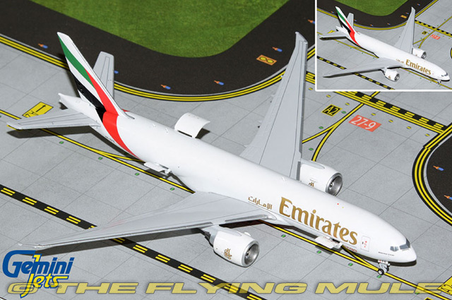 Please note: An optional display stand is available separately if you wish to display this model "in-flight". Designed as a wide-bodied, twin-engined airliner to compete with the Airbus A330/A340 and the McDonnell Douglas MD-11, the 777 was first flown on June 12th, 1994. A pair of the world's largest diameter turbofan engines power the aircraft which currently holds the record for world's largest twin-engined airliner. The 777 was Boeing's first fly-by-wire airliner, featuring complete glass cockpit displays and flight envelope protection. Standard varients have a range of 4,200 nautical miles while Extended Range (ER) variants can fly for 6,600 nautical miles and the Longer Range (LR) variant is the world's longest range airliner capable of flying 7,800 nautical miles. © Copyright 2003-2025 The Flying Mule, Inc. The GeminiJets "Gemini Jets" range presents higly-detailed, ready-made diecast models of civilian and military aircraft in 1:400 scale. Prized by collectors worldwide, Gemini define the benchmark by which other 1:400 aircraft brands are judged. GeminiJets "Gemini Jets" diecast airplanes feature: - Diecast metal construction, including wings and tail surfaces.
