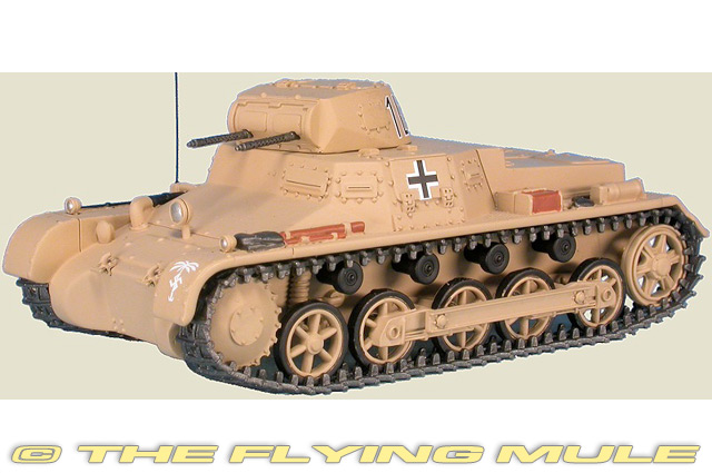 The Sd.Kfz Panzer I originally designed as a training tank for the German army was used in many theaters in WWII and the Spanish Civil War. Design for Panzer I began in 1932 and went into mass production in 1934. On Hitler's birthday there was a demonstration of the Panzer Is. Hitler was amazed by the show and ordered them into mass production. The Panzer I was armed with twin MG-34 machine guns as the main armament and had extremely thin armour. The Panzer I saw service in the Spanish Civil War and the begining years of WWII. It was not very effective due to its thin armour and light armament, although was used with success as a training tank. There were other variants of the Panzer I, these variants included, a tank destroyer and a command tank. The Tank destroyer was called the PanzerJeager I and was armed with a more potent 40mm anti-tank gun but had no turret. The second variant was called the Kleiner Panzerbefehlswagen ("small armoured command vehicle") 200 of these were manufactured. Production of the Panzer I ceased in 1937. © Copyright 2003-2025 The Flying Mule, Inc.