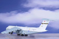 With a length of 38 cm and a wing span of 34 cm, the C-5, also nicknamed "Lockheed Hilton" for its cavernous cargo hold, possesses considerable dimensions - even in 1/200. Metal landing gear with rubber tires provide a sure standing for this resin-made model.