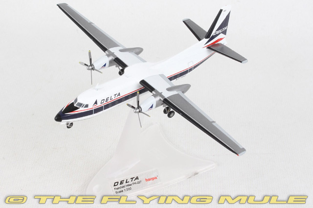 | Fairchild Hiller FH-227 | | 5" | | 5.75" | Designed as a pressurized, turboprop medium-range airliner, the F27 was first flown on November 24th, 1955. © Copyright 2003-2025 The Flying Mule, Inc. The Herpa "1:200 Wings" range presents detailed, ready-made diecast models of civilian and military aircraft in 1:200 scale. Herpa "1:200 Wings" diecast airplanes feature: - Diecast metal construction with some plastic components.