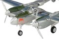 Herpa's 1:72 scale P-38 Lightning is a high quality model with all-metal wings, tail booms and fuselage, and a plastic horizontal stabilizer. Special attention has been paid to the supercharger detail on the turbine and bearing cooling duct and on the supercharger cooling and side mounted ram air intakes. Details such as the mass balance weights, crew access ladder, pitot tube, nose-mounted antenna and engine water supply lines - visible inside each wheel well - are separately applied. Other details include engine radiators, and radio equipment located in the rear bay.