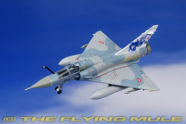| Dassault Mirage 2000C | | 2.75" | | 1.75" | Designed as a lightweight fighter for the French Air Force, the Dassault Mirage 2000 was first flown on March 10th, 1978. The Mirage 2000 is a fourth generation fighter based on the Mirage III. It has a delta wing, one engine, a dual-intake, and can carry a range of air-to-surface weapons, including laser-guided bombs. Variants include a single-seat or dual-seat version. The dual-seat 2000N is nuclear strike capable, armed with nuclear weapons and equipped with navigation avionics that are capable of handling air-to-ground munitions. The Mirage 2000C is a single-seat, all weather interceptor armed with high firing rate 30mm guns. © Copyright 2003-2025 The Flying Mule, Inc. The Hogan Wings "M-Series" range presents detailed, ready-made diecast models of military aircraft in 1:200 scale. Prized by collectors worldwide these little gems can build an impressive diecast collection. Don't be fooled by their small size, the level of detail on these models outclasses several larger-scale diecast aircraft ranges and has to be seen to be believed. Build a highly-detailed, accurate and wide-ranging military aircraft collection on a single display shelf and for an attractive price with Hogan Wings' "M-Series". Hogan Wings "M-Series" diecast airplanes feature: - Diecast metal construction with a minimum of plastic components.