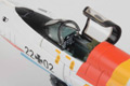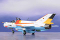 Hobby Master's 1:72 scale MiG-21 is constructed in diecast metal with only the smallest amount of plastic used. The configurable cockpit canopy provides a clear view of the interior and pilot figure and the central air brake is deployable. A G-P9 cannon pod with hand-painted 23mm twin-barrel 23mm can be seen below the cockpit. The wing is crafted of solid metal, and structural details can be seen inside the wheel wells and inboard gear doors. Each wingtip has an integrated fence and air date sensors. Ordnance includes removable fuel tanks and K-13A air-to-air missiles.