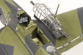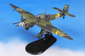 Hobby Master's 1:72 scale Ju 87 Stuka is constructed almost entirely from diecast metal, with plastic components in areas requiring fine details (such as antennas, pitot tubes and flaperons). The fuselage is beautifully integrated with the wing, with the only visible seam on the bottom. Crisp panel lines cover the surface of the model, which also features an all-metal braced horizontal stabilizer and detailed exhaust stack and engine radiator. The gull-shaped wings have metal spatted landing gear and separately applied flaperons with two balance weights near each wing tip. Variants include the Ju 87D with dive brakes and bombs and the Ju 87G tank killer with 20mm cannon pods.