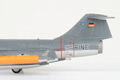 Hobby Master's 1:72 scale F-104 Starfighter is a good looking model with many quality features. The exceptionally long fuselage is constructed in diecast metal, with plastic side-mounted engine intakes. The rear turbine blades and the exhaust with its "turkey feathers" are some of the high points of this model, along with a canopy that opens to reveal an ejection seat and pad printed front and side instrument panels. The M61 Vulcan Gatling gun port is beautifully recreated, and the complex main landing gear is accurately rendered, securely locking into place for ground display. Most releases include removable wingtip fuel tanks, with fuselage mounted missiles on some versions.