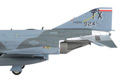 Hobby Master's 1:72 scale F-4 Phantom II is highly detailed and very popular among collectors. This model has an intricately crafted fuselage, with rear and forward canopies that open to expose cockpit interior details such as instrument panel dials, control stick and ejector seat handles. The solid metal wing has raised wing-tips and a dog-toothed leading edge that blends seamlessly into the fuselage. Each release includes a full complement of removable ordnance. Variants in this series have notable differences in the nose and/or tail fin and slight variations in the engines' exhaust. Carrier-based variants have elevators with a raised leading edge, and land-based variants have standard leading edges.