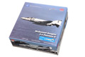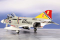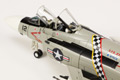 Hobby Master's 1:72 scale F-4 Phantom II is highly detailed and very popular among collectors. This model has an intricately crafted fuselage, with rear and forward canopies that open to expose cockpit interior details such as instrument panel dials, control stick and ejector seat handles. The solid metal wing has raised wing-tips and a dog-toothed leading edge that blends seamlessly into the fuselage. Each release includes a full complement of removable ordnance. Variants in this series have notable differences in the nose and/or tail fin and slight variations in the engines' exhaust. Carrier-based variants have elevators with a raised leading edge, and land-based variants have standard leading edges.