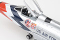 Hobby Master's 1:72 scale F-100 Super Sabre is constructed almost entirely from diecast metal, with only the smallest amount of plastic used. The fuselage is almost seamless, with a hinged articulating canopy that opens for viewing of the cockpit interior. The engine intake has near-razor sharp edges with an unusually long pitot tube, and the surface surrounding the engine is correctly unpainted. The wing has crisp panel lines, hand-painted navigation lights and a complete set of ordnance including rocket, bombs and fuel tanks. Variants include the A, C and D; the D features a larger wing, aerodynamic fences on the wings and two types of refueling probes.