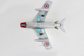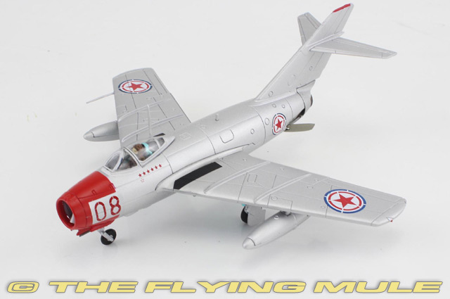 Hobby Master's 1:72 scale MiG-15 has a near-seamless construction, exceptionally crisp panel lines and just the right number of features. The canopy slides open or can be removed for an unobstructed view of the cockpit interior, highly detailed dials and gauges, control stick and side panel equipment. Three cannon pods below the nose house 23mm and 37mm cannons, each fitted with separately applied barrels. The air intake separator has transparent headlights, and most releases feature configurable speed brakes. The solid metal wing has configurable flaps that expose internal structural detail when deployed and exceptionally detailed landing gear struts and actuator arms.