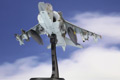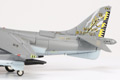 Hobby Master's 1:72 scale Harrier is a very well-executed model designed with great attention to detail and constructed almost entirely from diecast metal, with only a small amount of plastic. The configurable canopy provides an unobstructed view of the unusually detailed instrument panel. The turbofan can be clearly seen inside the engine intake, the elevators rotate in unison, and there are four independently positionable engine exhaust ports with small vectoring ports at the rear and on the wingtips. The series includes the US AV-8B variant and the UK GR.Mk 9, and each release features a variety of removable fuel tanks and ordnance.