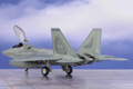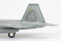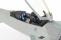 Hobby Master's 1:72 scale F-22 Raptor is constructed almost entirely in diecast metal with near-seamless construction. The cockpit has an articulating hinged smoke-colored canopy that closes with almost no visible gap and opens to reveal a detailed interior with side-mounted fly-by-wire joystick, throttle controls, ejection seat and pad-printed digital display screens. The stabalators are movable, and the under-wing mounted fuel tanks are removable. The landing gear are constructed as complete subassemblies for quick configuration, and a full complement of configurable ordnance exposes structural details when configured in the deployed position.