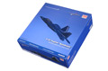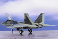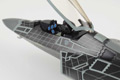 Hobby Master's 1:72 scale F-22 Raptor is constructed almost entirely in diecast metal with near-seamless construction. The cockpit has an articulating hinged smoke-colored canopy that closes with almost no visible gap and opens to reveal a detailed interior with side-mounted fly-by-wire joystick, throttle controls, ejection seat and pad-printed digital display screens. The stabilators are movable, and the under-wing mounted fuel tanks are removable. The landing gear are constructed as complete subassemblies for quick configuration, and a full complement of configurable ordnance exposes structural details when configured in the deployed position.