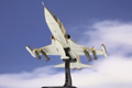 Hobby Master's 1:72 scale F-5 Tiger II is a sleek and fast looking model that uses a clever mix of metal and plastic components with near-seamless construction. The solid metal wing has sharp-edged plastic leading edge root extensions appropriate to the variant being modeled. The removable canopy provides a clear view of the cockpit's interior features such as the pad-printed front and side mounted instrument panels. Landing gear and doors have been included as one piece sub-assemblies that allow for quick and easy configuration for ground display. The series covers both fighter variants with optional ordnance configurations (see photos) and the long nose reconnaissance variant.