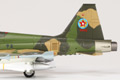 Hobby Master's 1:72 scale F-5 Tiger II is a sleek and fast looking model that uses a clever mix of metal and plastic components with near-seamless construction. The solid metal wing has sharp-edged plastic leading edge root extensions appropriate to the variant being modeled. The removable canopy provides a clear view of the cockpit's interior features such as the pad-printed front and side mounted instrument panels. Landing gear and doors have been included as one piece sub-assemblies that allow for quick and easy configuration for ground display. The series covers both fighter variants with optional ordnance configurations (see photos) and the long nose reconnaissance variant.