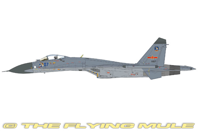 The Su-27SK Flanker-B is a Russian-designed, single-seat, air-superiority fighter purchased by the People's Liberation Army Air Force (PLAAF) in the 1990s, marking a major upgrade for Chinese aerial capabilities. Starting in 1992, China acquired 36 Su-27SK and 42 Su-27UBK variants, which were later license-produced as the J-11. Designed by the Soviet Union to challenge the superiority of fourth generation US fighters such as the F-15 Eagle, the Su-27 was first flown on May 20, 1977. This one seat Mach-2 fighter had the Soviet Union's first operational fly-by-wire system. The aircraft is very large compared to the MiG-29, its closest Soviet counterpart, but it is built with a high percentage of titanium, which helps minimize its weight. It is exceptionally agile and is perhaps most famous for its "Cobra" maneuver, which is a short, sustained level flight at a 120 degree angle of attack, often performed at air shows. © Copyright 2003-2026 The Flying Mule, Inc. The Hobby Master "1:72 Air Power Series" range presents detailed, ready-made diecast models of military aircraft. Hobby Master "1:72 Air Power Series" diecast airplanes feature: - Diecast metal construction with some plastic components.