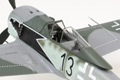 Hobby Master's 1:48 scale Fw 190 is a quality model, assembled with exceptional craftsmanship and attention to detail. Among this model's features are a solid metal wing with simulated fabric-stretched control surfaces, a 12-bladed cooling fan that spins in unison with the propeller, cylinder head cooling fins that are visible inside the cowling, individual exhaust stacks, removable center mounted fuel tank and a sliding canopy that reveals pad printed dials and gauges inside the cockpit. Variants in this series include the early 190A, the upgraded 190A with armor plating, and the 190F attack variant with larger canopy and removable center-mounted bombs.