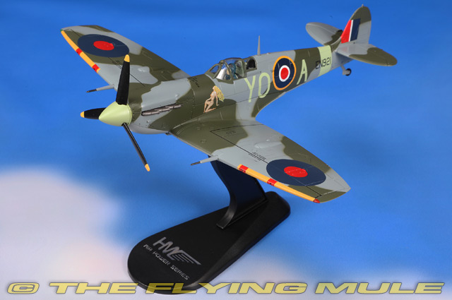 Hobby Master's 1:48 scale Spitfire Mk I is cleverly designed to provide the collector with a reasonably-priced, top quality product with just the right number of features. This beautiful model features a canopy that slides open or is removable, providing a clear view of the pad-printed gauges and correctly-rendered control stick with loop stick grip. The all-metal propeller spins freely and the engine exhaust stack has been separately applied. The near-solid metal wing has hinged metal landing gear with integrated metal gear doors, and the wing root fairing is integrated in the wing's casting, which creates a flawless transition between the fuselage and the near-razor thin trailing edge.