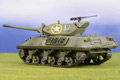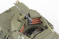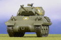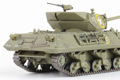 Hobby Master's 1:72 scale M-10 Wolverine is constructed almost entirely from plastic, with the exception of the diecast metal bottom hull, which gives this model its characteristic weight. The opened top turret reveals a pivoting metal cannon and breech, six ammo rounds with bronze casings, three crew seats and a 50 cal machine gun with attached ammo can. When the turret is removed completely, additional details such as forward driver seats, additional ammo and diamond plated deck can be seen. The hull features shielded headlights and taillights, hand-painted battlefield equipment such as shovels, hatchets and hammers, and a beautifully recreated vertical volute spring suspension system.